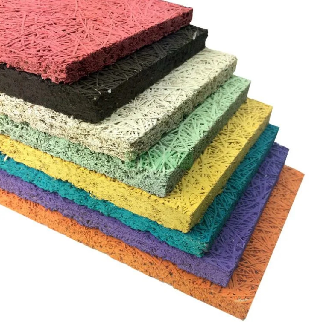 Акустические панели изначально не имеют яркого цвета, поскольку имеют базовый белый цемент. Потом их окрашивают при помощи напыления акриловыми красителями. Край материала может быть прямым или иметь фаску. Поверхность неравномерная.