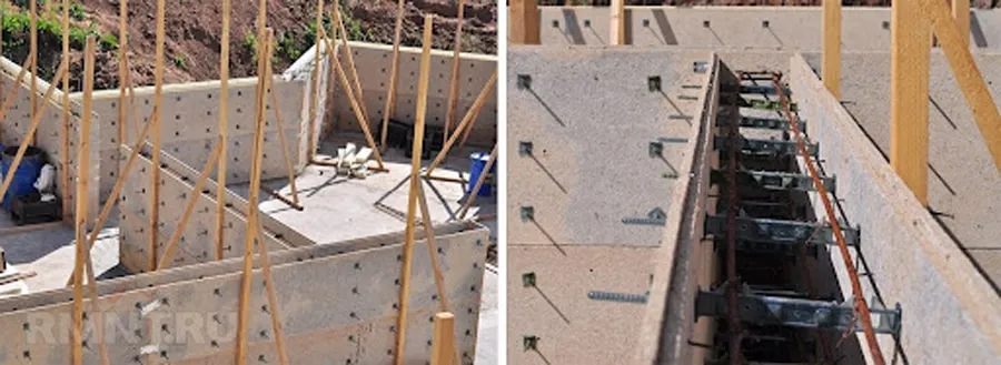 Благодаря этому возрастает общая паропроницаемость стены. Если для заливки используют тяжелый железобетон, то при небольшой толщине он обладает высокими несущими свойствами, а опалубка толщиной 50 мм обеспечивает минимальные теплопотери.