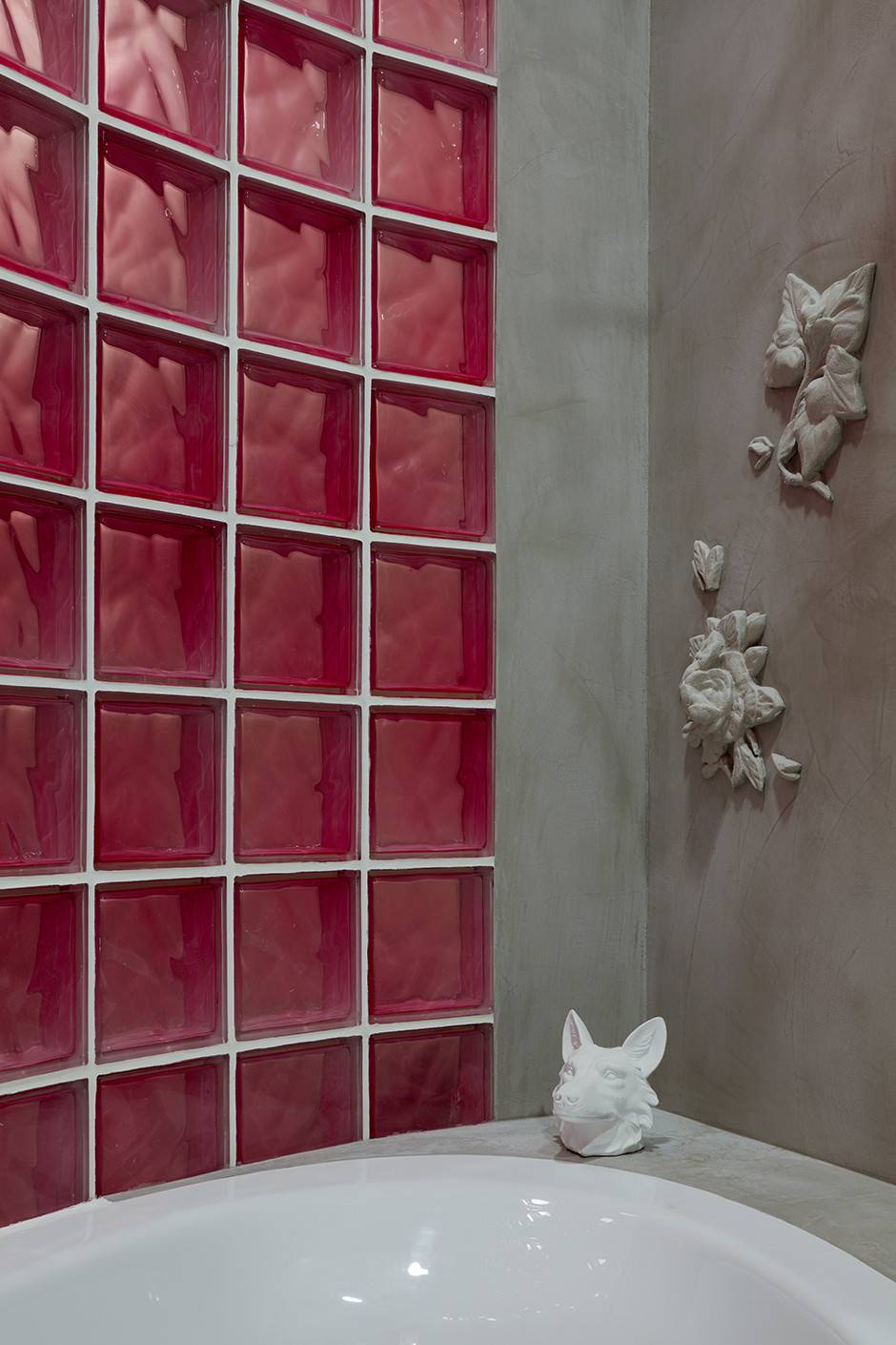 ФОТО: appart1.ruБетонные стены ванной комнаты украшает несколько барельефов с цветочной композицией