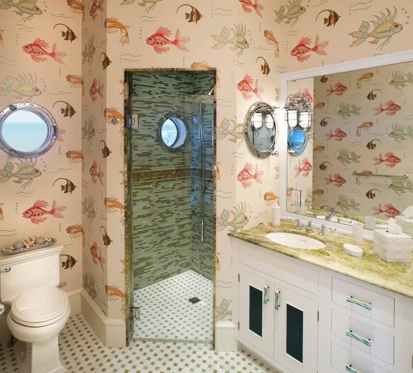 На стенах можно изобразить узор, корабль, рыб, русалок, дельфинов и множество других обитателей морей.