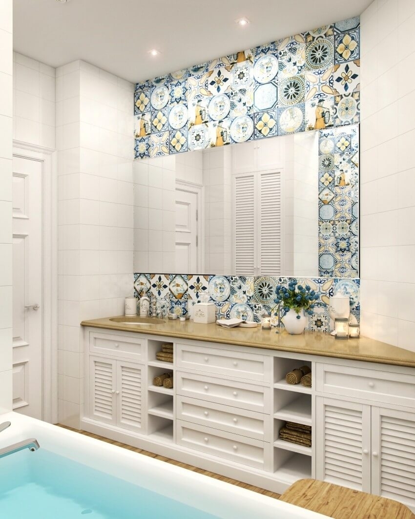 Плитка в ванную с морской темой – сочетание синего и белого «кабанчика»