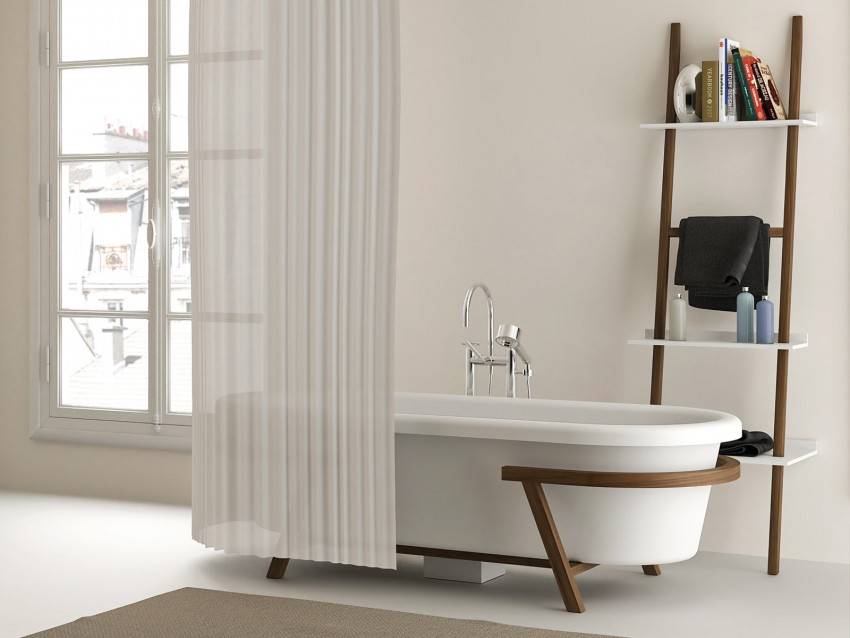 Особое внимание уделяется выбору ванной. Если помещение просторное, в нем устанавливается красивая ванна на изогнутых ножках