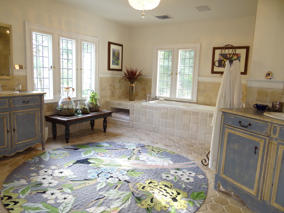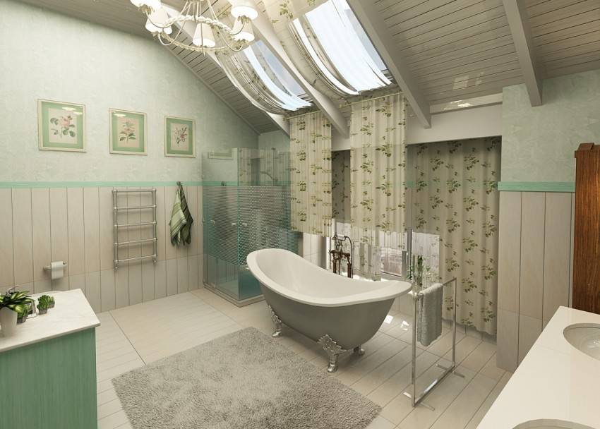 Проблемы с размерами помещения чаще всего возникают в городских квартирах, тогда как ванная комната в доме за городом получится более приближенной к канону стиля прованс.