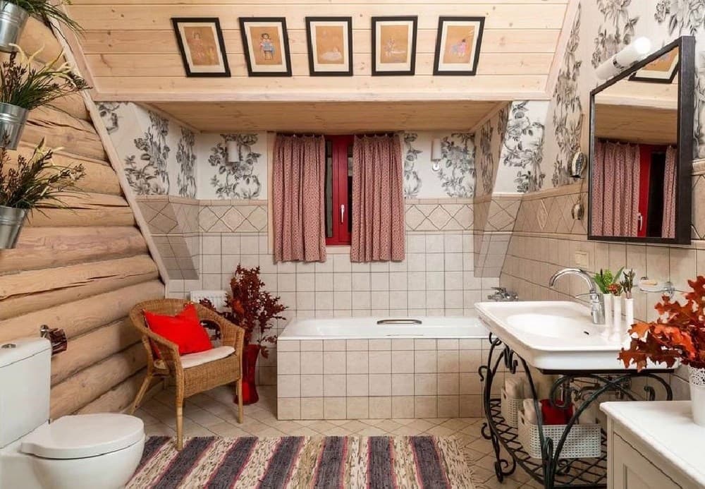 Традиционная ванная на ножках считается обязательным элементом. А вот о душевой кабинке лучше забыть. В остальном, наполнение комнаты может соответствовать потребностям владельцев.