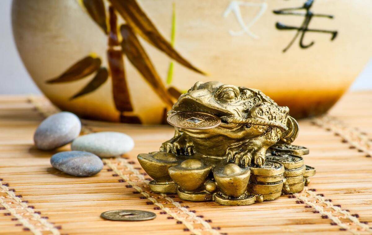 Статуэтка в виде трехлапой жабы считается мощным оберегом, который способен притягивать для своего владельца большие богатства и оберегать от неразумных трат. Обычно она «сидит» на горе монет и еще одну, с иероглифами, держит во рту.