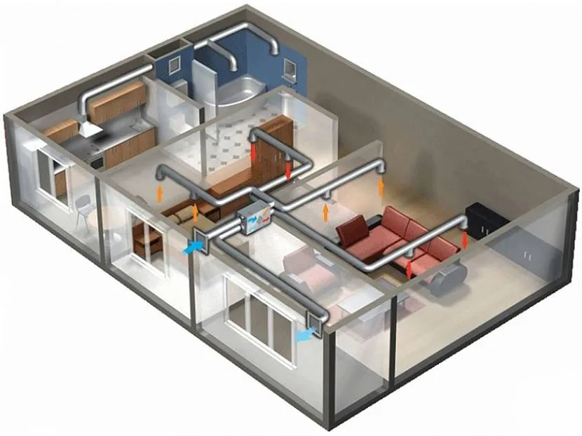 Для улучшения воздухообмена предусматривается система принудительной вентиляции в квартире. Она бывает трех видов: