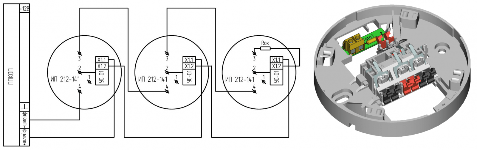 Схема подключения пожарного извещателя