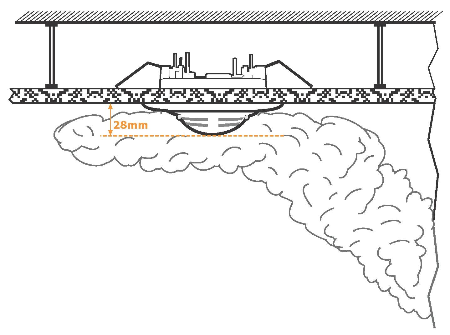 Оптимальный вариант для обычного помещения неспециализированного назначения — многоточечные извещатели. Монтаж в межпотолочном пространстве точечного датчика предполагает его удаление на 0,1 метра от стены и в диапазоне от 0,1 до 0,3 метра от перекрытия.