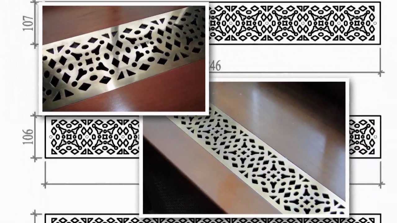 Традиционные варианты исполнения – квадрат и прямоугольник. Конструкция может быть цельной или состоять из нескольких последовательно соединенных коротких решеток. Отверстия обычно однородны по габаритам и имеют щелевидную форму, но сейчас появляются и иные варианты – например, круглые или с ажурными узорами.