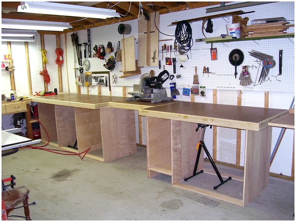 Верстак надо устанавливать в хорошо освещенном месте (у окна), но при этом надо установить и лампы для освещения в вечернее время. Рядом со столом устанавливаются электрические розетки для дрели и другого инструмента. Подводка проводов должна быть проведена с использованием металлической или пластиковой трубы.