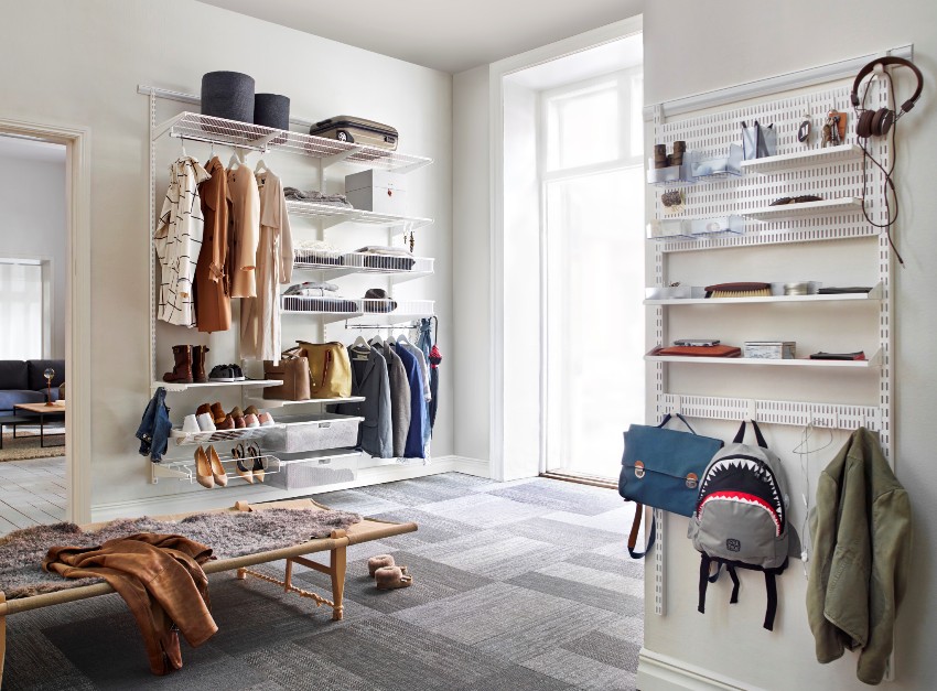 Нижнюю полку вешалки можно использовать в качестве ниши для хранения вещей