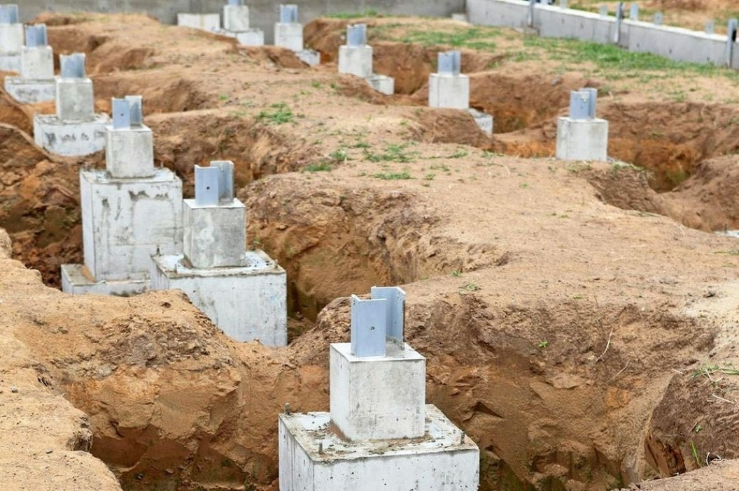 В данном случае наиболее оптимальной технологией является метод забивки или закручивания в землю свай. Это позволяет сэкономить массу сил, времени и денег, которые понадобились бы для проведения землеройных работ и заливки монолитной ленты аналогичной глубины. Выделяют три технологии сооружения свайного основания: