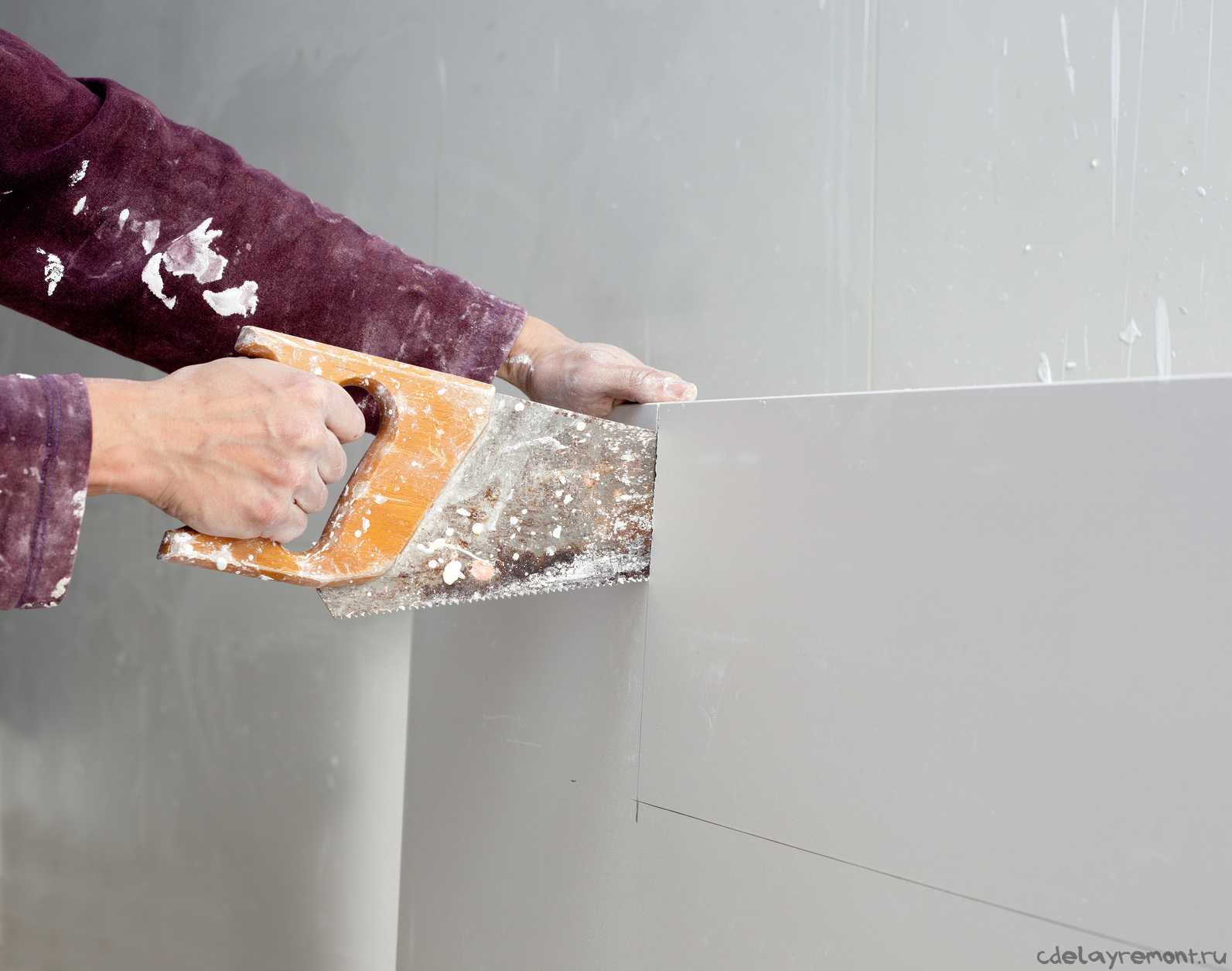 ГКЛ не имеет большого ассортимента размеров, поскольку он легко подгоняется под необходимые параметры путем нарезки или сращивания на каркасе.