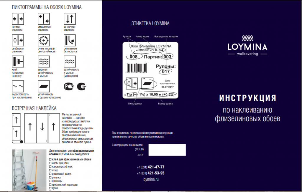 Однотонные полотна не нуждаются в подборе изображения и правильного смещения одной полосы относительно другой. Если выбранная модель нуждается в подгоне рисунка, расход материала существенно увеличится. На каждой упаковке производитель в этом случае также использует специальную пиктограмму