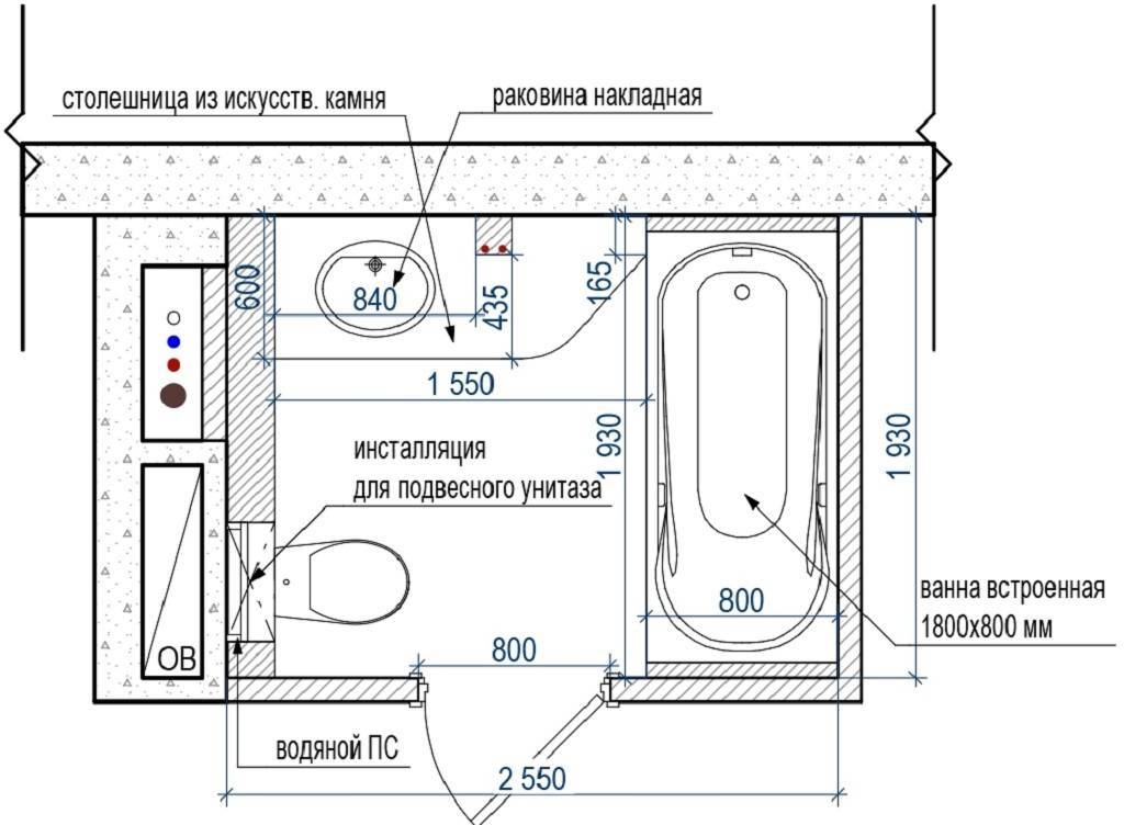Также пространство перед душевой и раковиной должно быть более 60 сантиметров. Раковину нужно устанавливать исходя из роста хозяев.