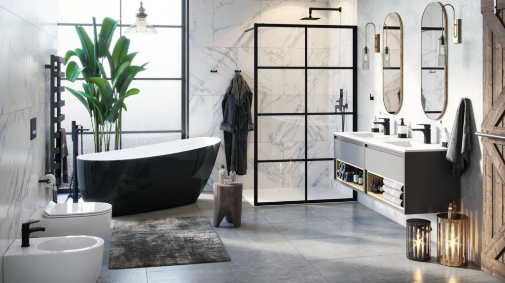 Обустройство ванной комнаты с отдельно стоящей ванной