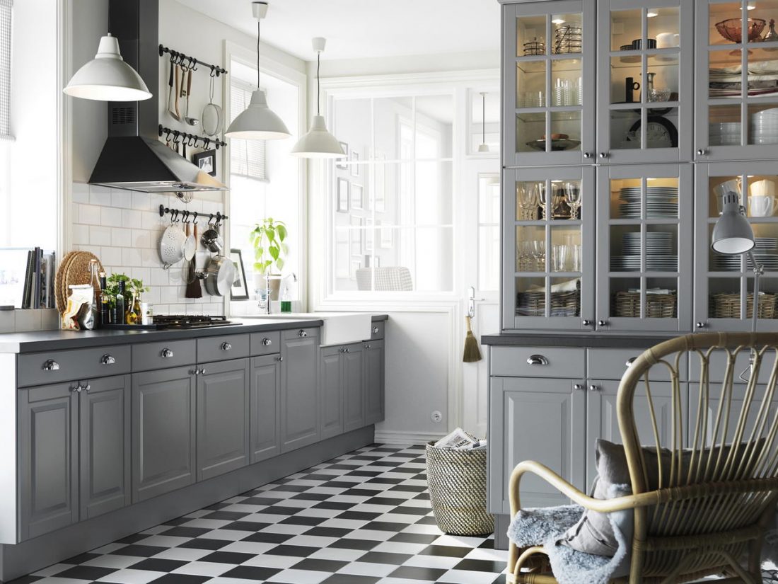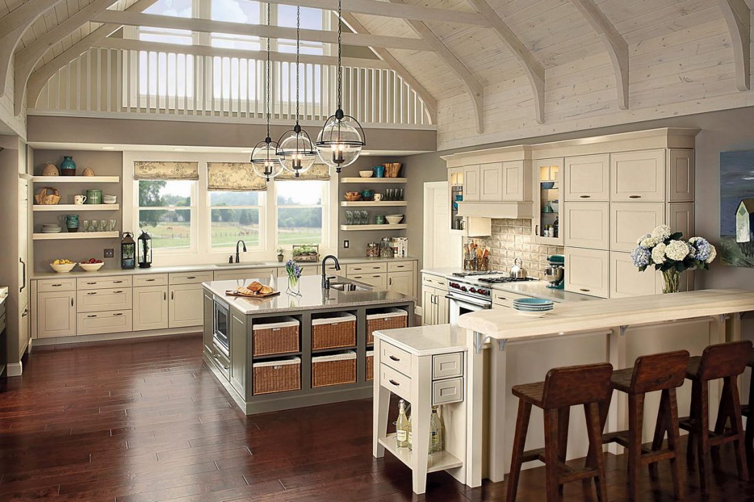 Отделка основных поверхностей в кухне может быть абсолютно разной. Полы должны легко мыться, поэтому их покрывают керамической плиткой с противоскользящим покрытием, чтобы можно было безопасно передвигаться. Полы обычные белые – крашенные или беленые. Первый вариант предпочтительнее, так как побелка в условиях повышенной влажности и постоянных колебаний температуры быстро потрескается.
