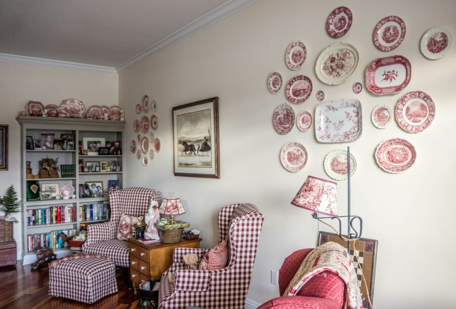 ВАЖНО: излюбленный принт кантри стиля – цветочный. Мелкие розы, пионы и фиалки зачастую покрывают всю поверхность стен в доме.. В целом используемые оттенки слегка приглушены, создавая ощущение выцветшей на солнце винтажности.
