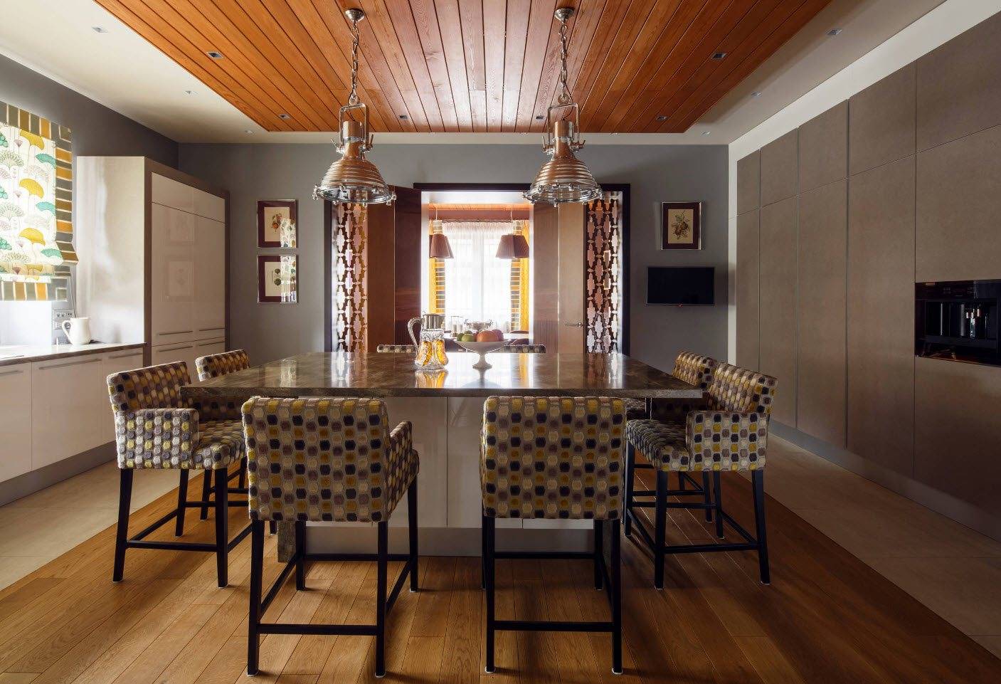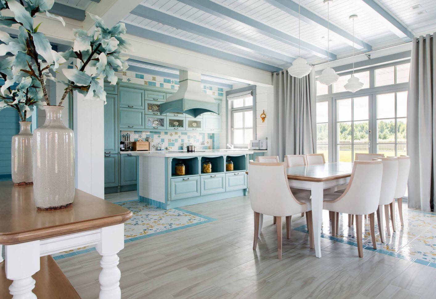 Деревянные балки на потолке позволяют подчеркнуть его натуральность.