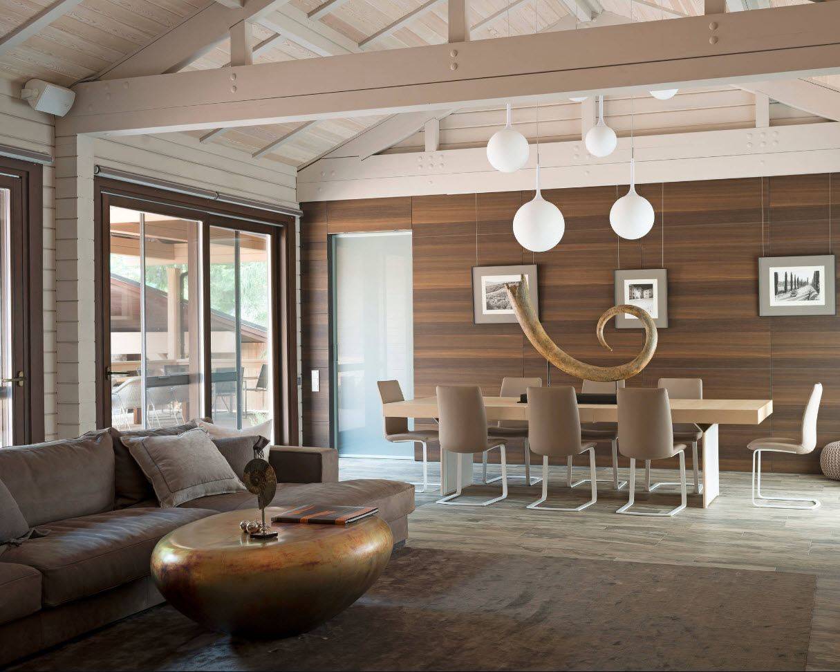 Внутренняя отделка деревянного дома из бруса стеновыми панелями бывает разного типа: