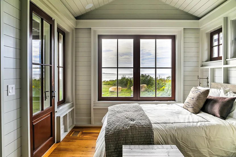 В спальне лучше окна оформить шторами