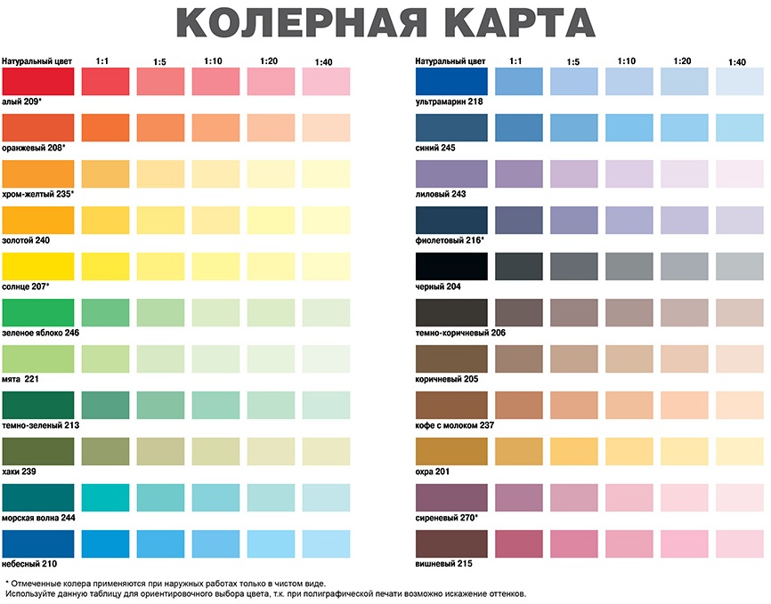 Дисперсионные красители в основном имеют белый цвет и чтобы придать нужный оттенок, необходимо использовать колер. Соединяя основные цвета (красный, желтый, синий) можно получить любые цвета.