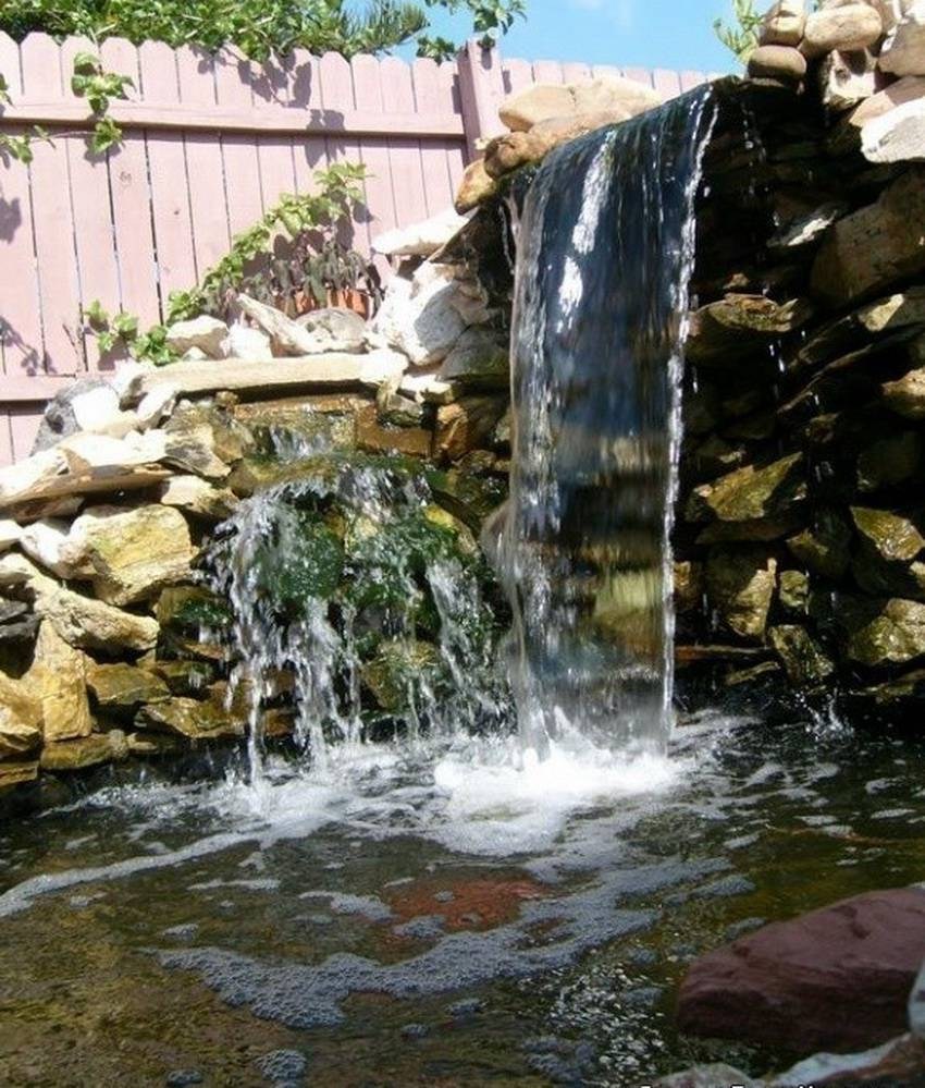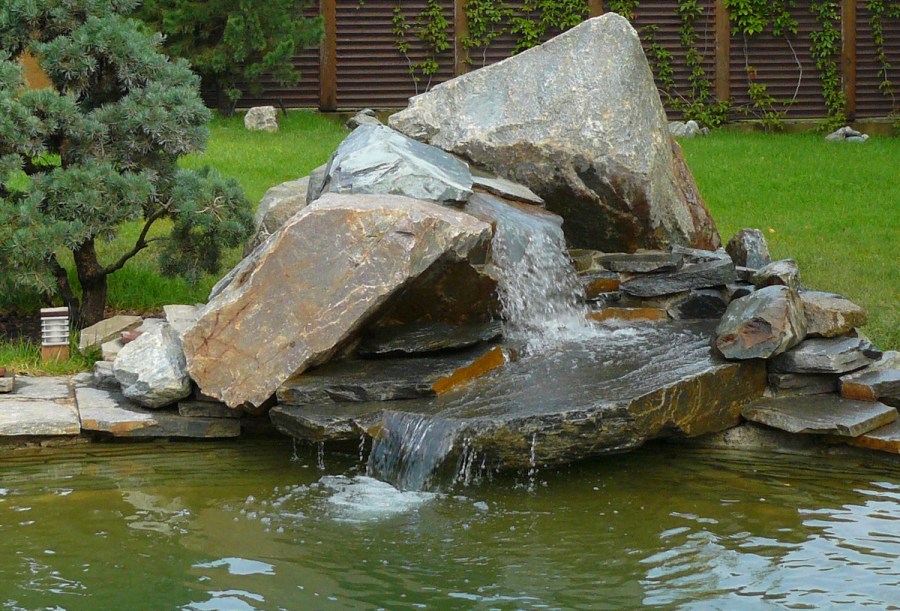 С другой стороны, водопаду противопоказано постоянное нахождение под жарким солнцем: в воде стремительно размножаются микроорганизмы, водоем «цветет», его нужно часто чистить. Идеально, если чаша пруда будет «выходить» из тени только в утренние и прохладные послеполуденные часы.