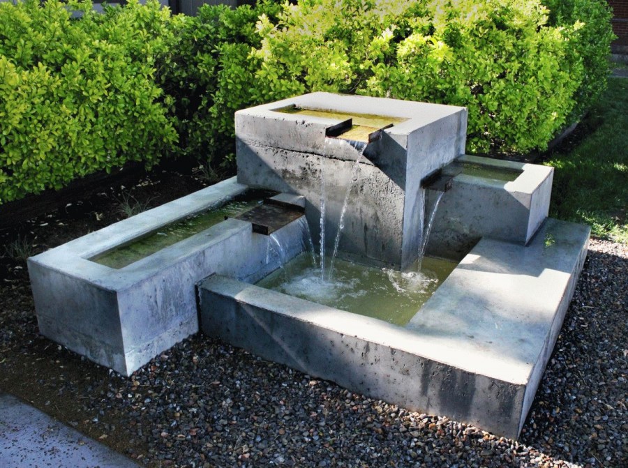 Водоем выглядит эффектно, если в него запустить рыбу или специальные водные растения. В таком случае чаша должна быть установлена от 2 м уровня промерзания почвы, тогда флора и фауна не нарушится в зимний период. Вода в таком водоеме не сливается из чаши, но она должна быть обязательно изготовлена из бетона.