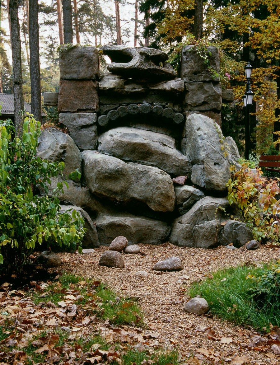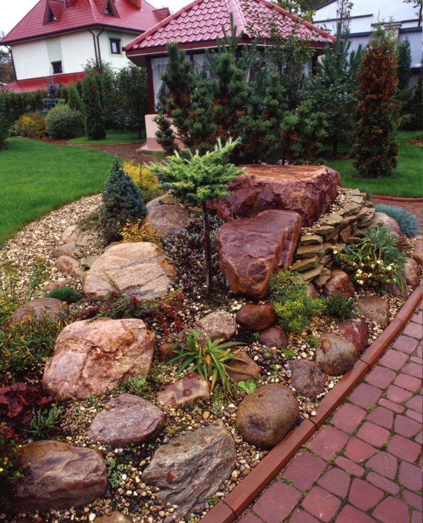 Следующий фактор – рельеф дачного двора. Проще всего воспользоваться имеющимся перепадом высоты: выложить ступени, установить несколько камней. Если такового нет, сооружают каменную горку в любом подходящем месте.