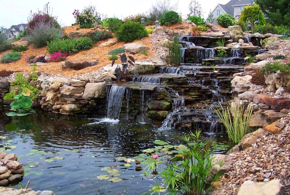 Рельеф участка и размеры существенно влияют на формирование ландшафтной водной композиции. Участок с перепадом уровней грунта — идеальное место для создания водопада. На ровном участке нужно искусственно создавать неровности рельефа.