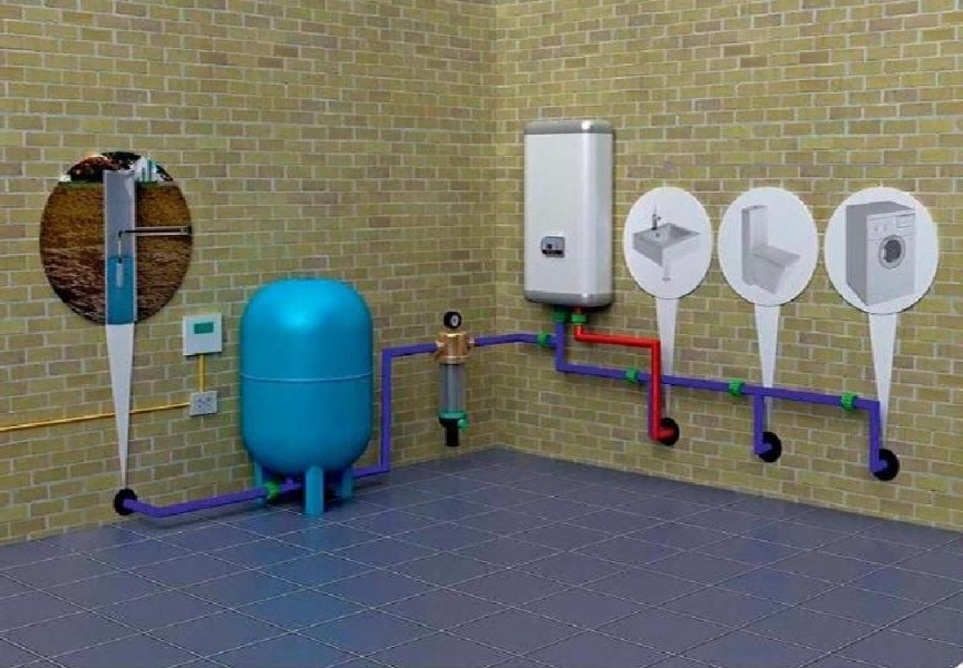 При правильном решении проблемы, как провести воду со скважины в дом, готовая система водоснабжения в доме должна обеспечивать бесперебойную подачу холодной и горячей водой в каждую точку водоразбора.