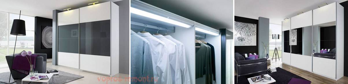 Также понадобятся такие комплектующие, как штанги для вешалок, направляющие для движения створок, дверной механизм.