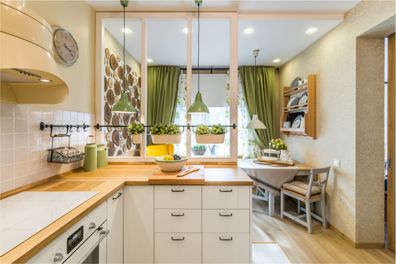 Чтобы выбрать подходящий кухонный светильник, нужно проанализировать взаимное расположение функциональных зон и учесть форму и площадь помещения.