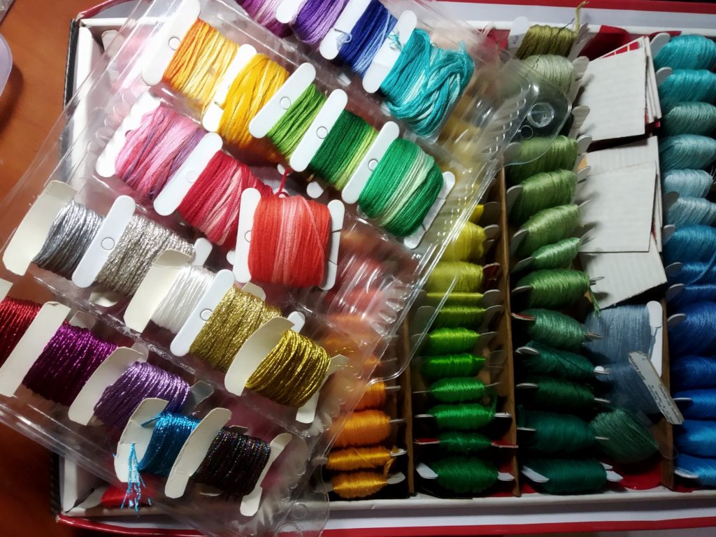 - Нитками. Во-первых, нужно сразу приобретать набор ниток с различной палитрой цветов. Во-вторых, использовать нужно мулине, металлизированные гладкие нити, персидскую пряжу или тонкую прочную шерсть.