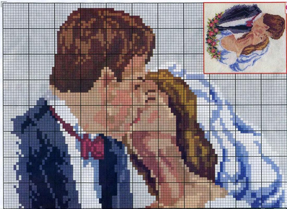 Сделать изображение для вышивания можно практически из любой картинки. По таким рисункам можно создать уникальный портрет родственников или любимого человека.