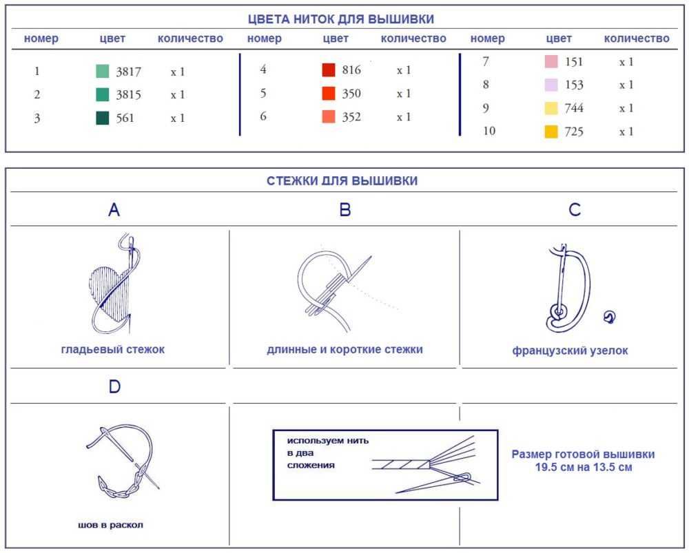 Минимум используемых легких швов. Скачать схему вышивки гладью
