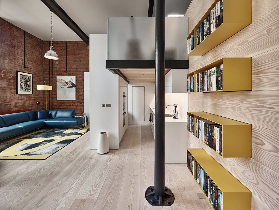 Эти два подхода (снижение уровня перекрытия и расширение стен) успешно сочетаются друг с другом. Альтернативный вариант — акцентная стена. Поверхность выделяют ярким цветом или интересным материалом