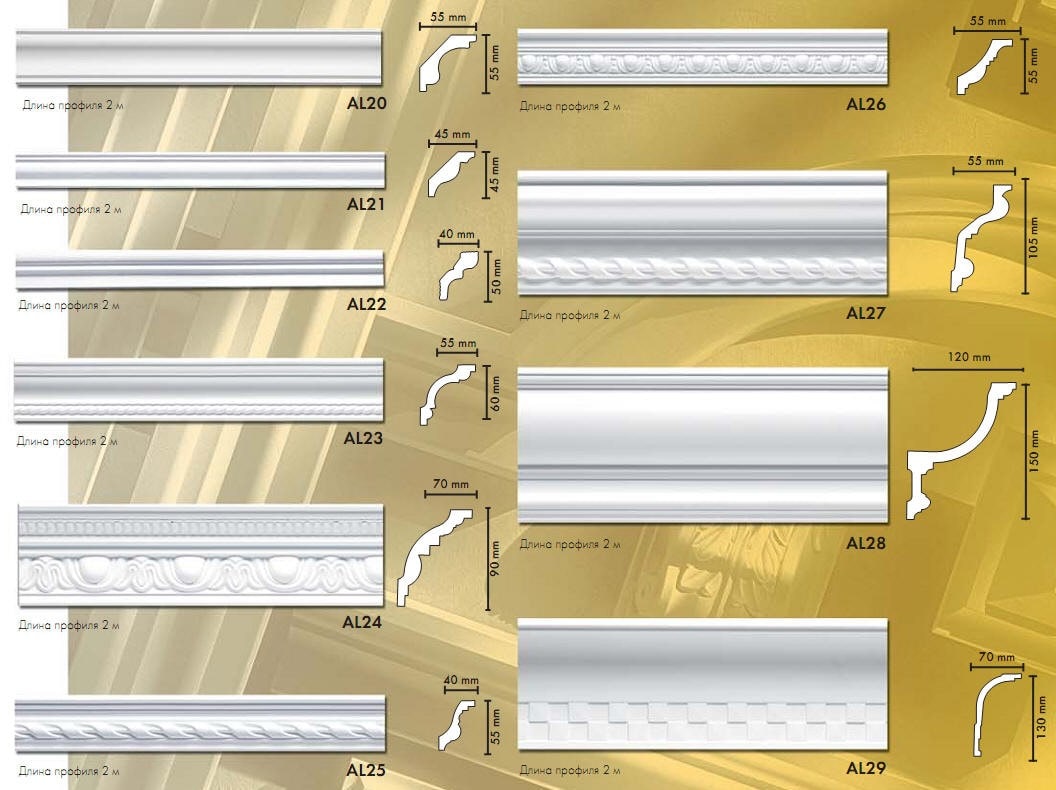 Карнизы с подсветкой, сформированной посредством применения светодиодной ленты, нужно также заранее подбирать. Далеко не все они могут функционировать вместе с лентой. Ниже представлены несколько вариантов: