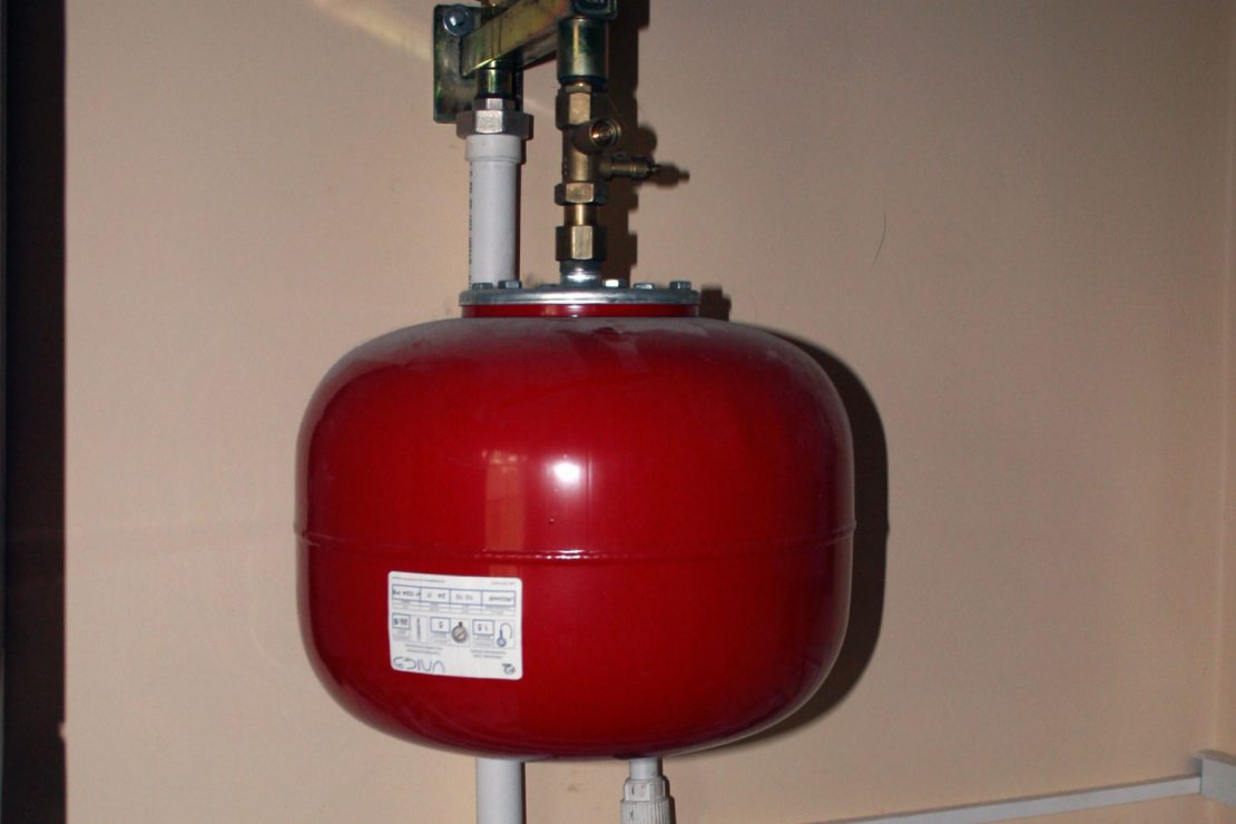 Герметичный сосуд компенсирует расширение воды при нагревании. Бак состоит из 2-х камер, разделенных гибкой мембраной. В одной части бака воздух, в другой – вода. Когда вода расширяется, воздух сжимается, мембрана вдавливается в отделение со сжатым воздухом. Как только теплоноситель остывает, мембрана возвращается на место, тем самым вытесняя жидкость в трубы. Таким образом поддерживается постоянный уровень давления, необходимый для равномерного прогрева носителя и циркуляции жидкости по тепловой системе.