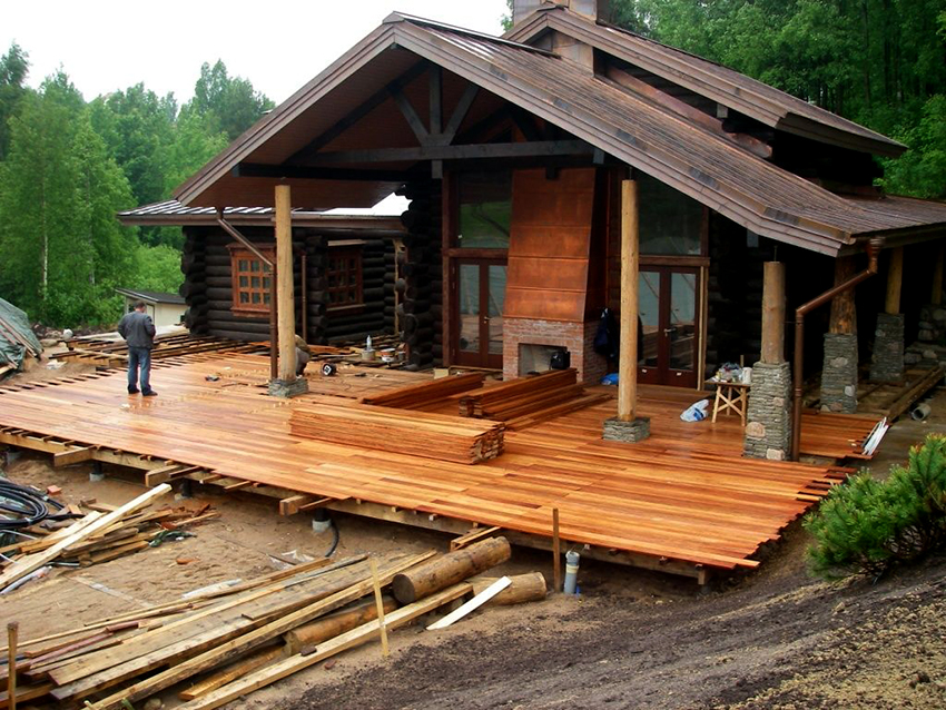 И последним конструкционным элементом, который ми еще не рассмотрели, является напольное покрытие. А ведь его значение в плане эстетического восприятия террасы никак нельзя недооценить. Терраса — это и есть сама площадка.