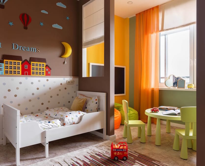 Когда основа комнаты уже готова и вы распланировали, на какие зоны будете делить пространство, можно переходить к планированию интерьера свой обновленной комнаты. Если совмещенная комната планируется как одно полноценное помещение, то ее стоит выполнять в одном стиле – все, от пола и стен до декоративных деталей, должно сочетаться между собой. Используйте светлые цвета и рельефные поверхности, чтобы сделать помещение визуальное еще более просторным.