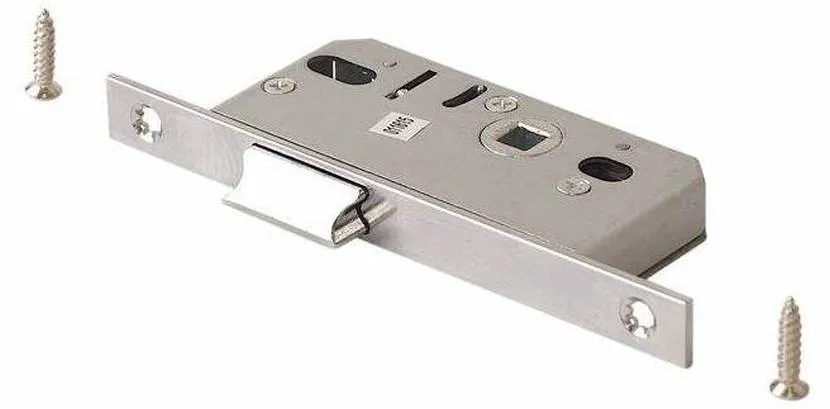 Принцип действия такого фиксатора полностью идентичен роликовой конструкции. Металлический подпружиненный элемент, представленный в виде обратного треугольника, углубляется в паз и фиксирует дверную конструкцию. Но есть одна отличительная особенность, которая отражается на процессе монтажа, чтобы открыть дверь, недостаточно просто нажать, так как защелка устанавливается в паз по плоскости и не выскальзывает обратно.