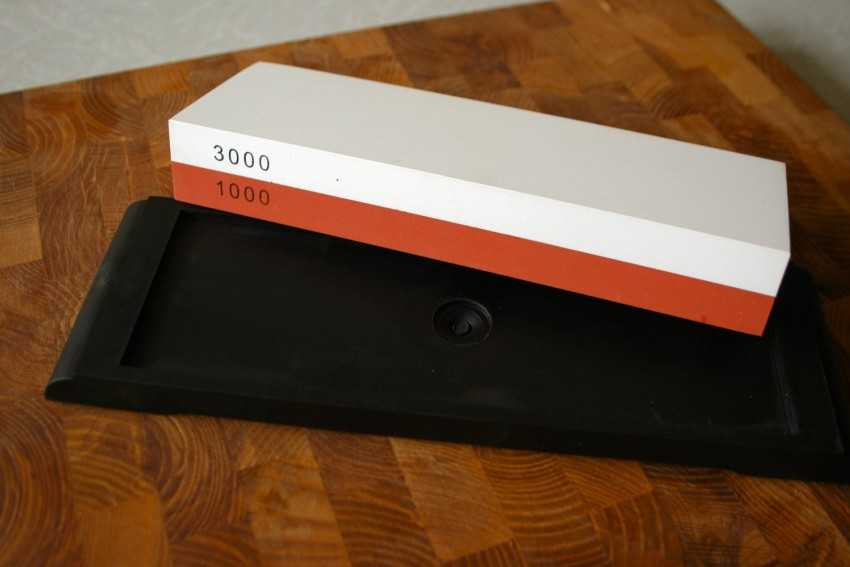 Для начала нужно правильно выбрать точильный камень. Они бывают натуральные и искусственные. Подходят для заточки и те и другие, но искусственные более универсальные. Не все знают, что перед использованием брусок нужно смазать маслом или намочить и оставить так минут на 15-20. Не будем углубляться в физику и химию, но эта процедура продлит жизнь точильному камню.