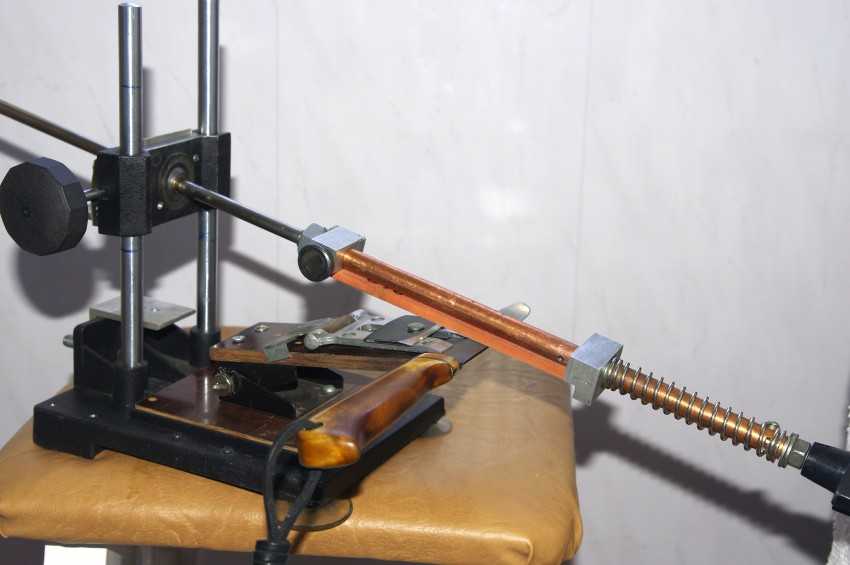 Ещё одно преимущество подобной схемы-лёгкость изготовления. Такую станочную конструкцию чаще применяют при заточке ножиков для фуганка и для кухни.