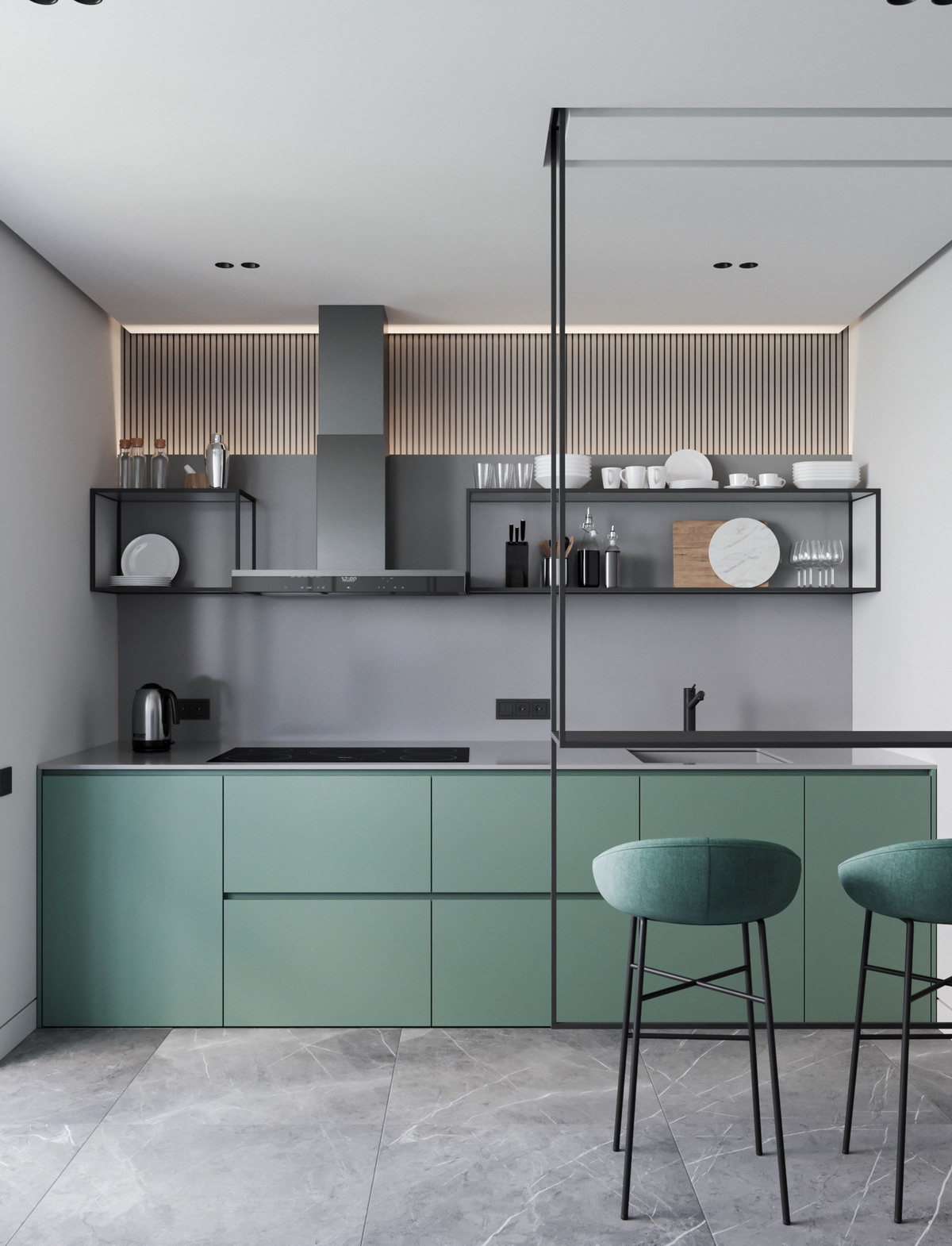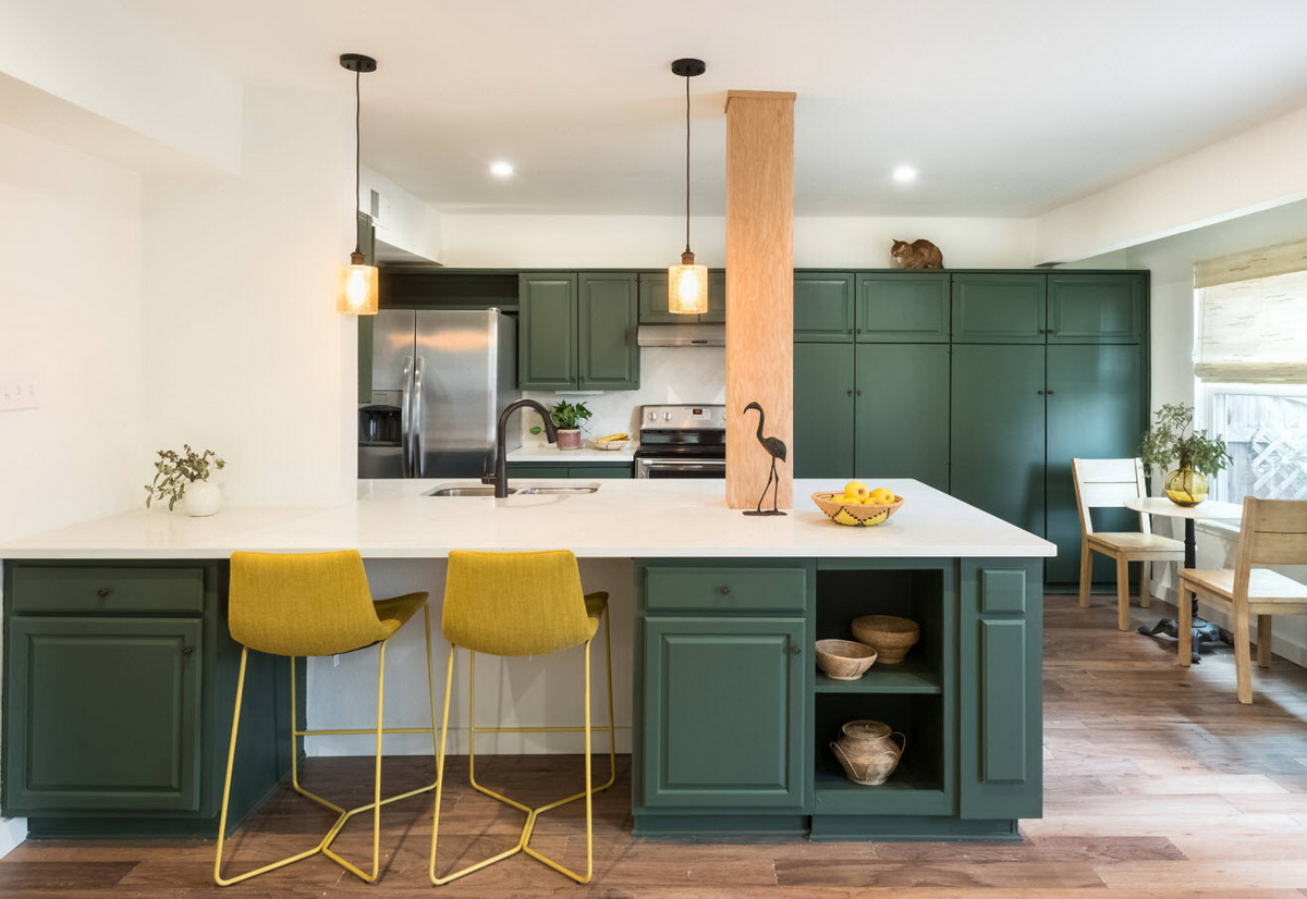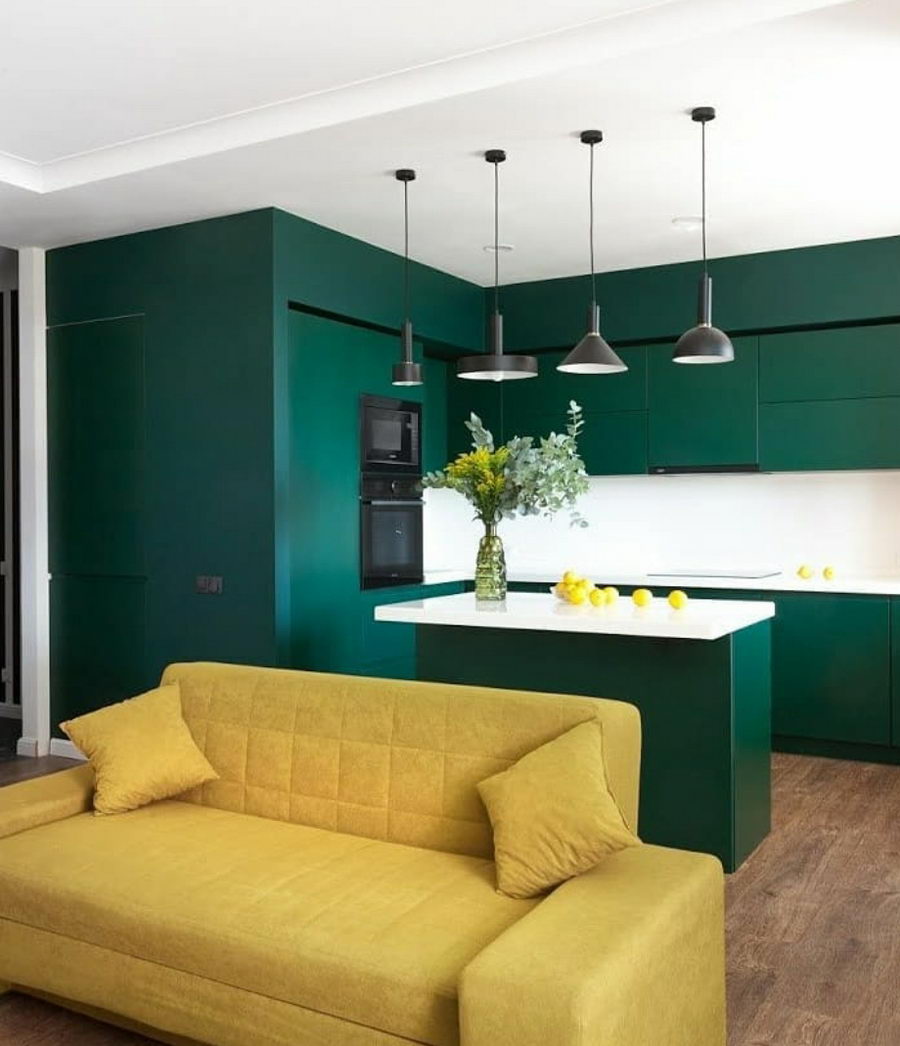 Этот цвет – истинный фаворит. Глубокий, насыщенный – он выглядит изысканно и благородно. Изумрудная кухня способна вписаться даже в классический стиль, но при этом не менее эффектна будет и в реализации современных стилей.