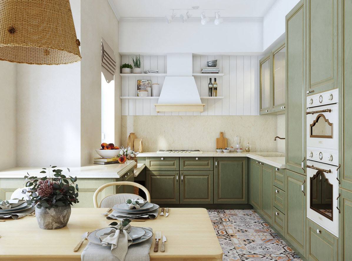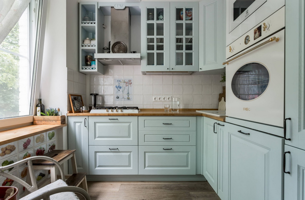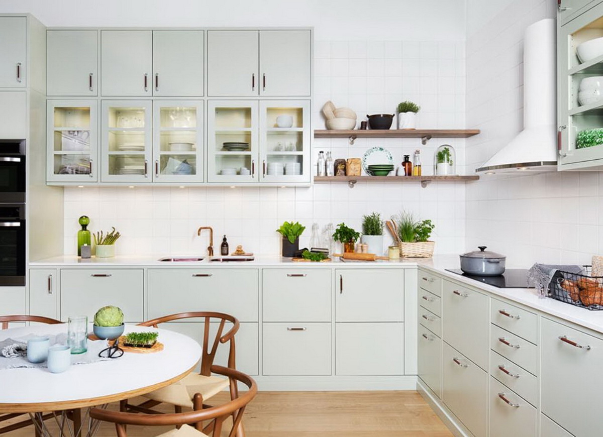 Очень нежный светлый тон, который отлично подойдет для небольшой кухни. Он будет визуально расширять пространство и делать его светлей. Мятный обладает успокаивающим эффектом, он словно окутывает уютом. Не случайно этот цвет часто выбирают для кухонь в стиле прованс.