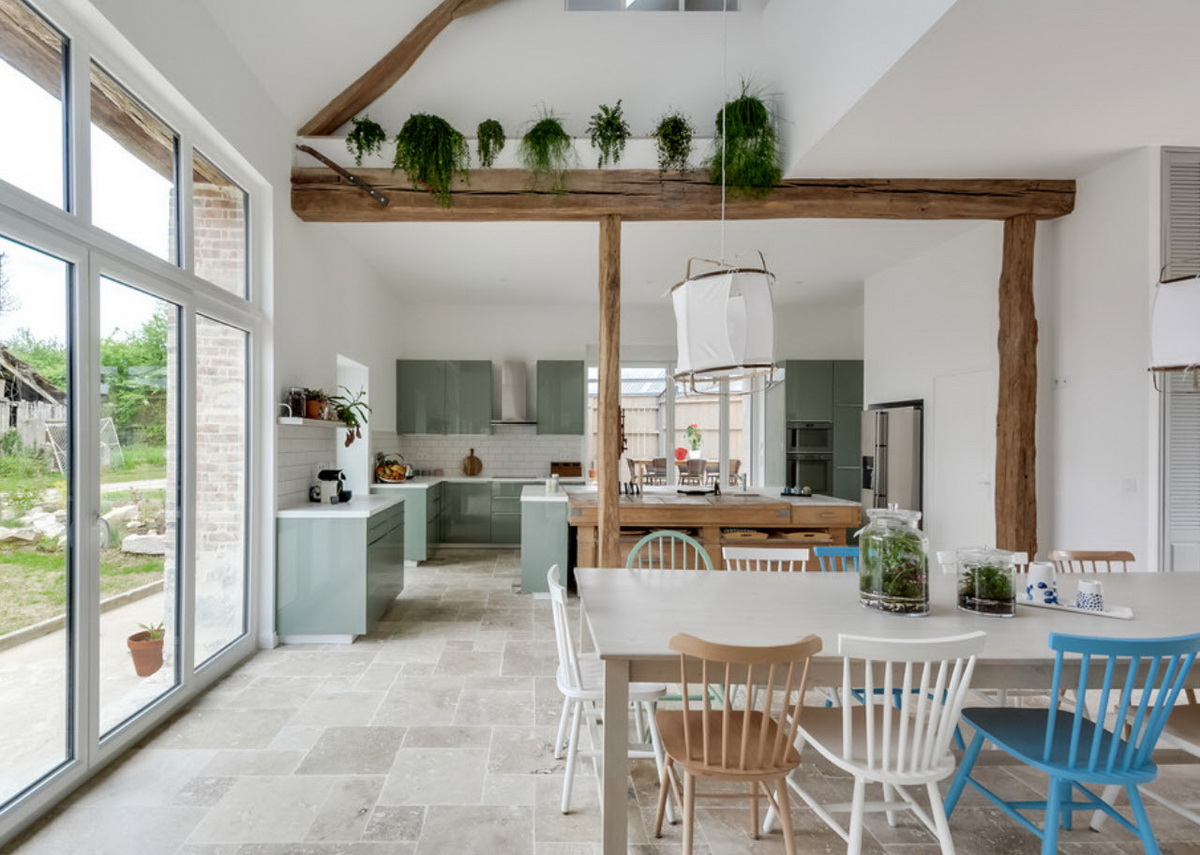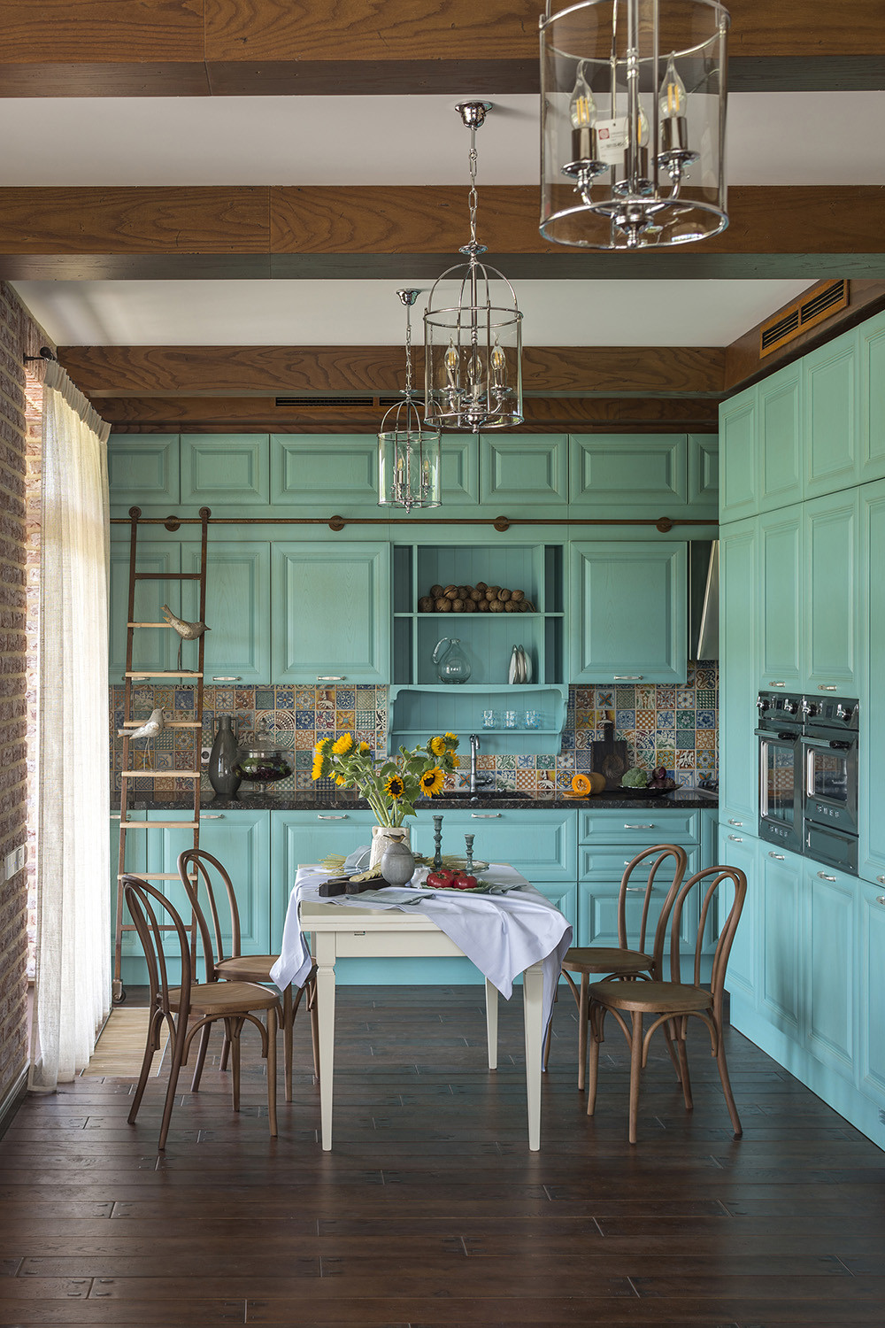 А чтобы добавить солнечности, его можно сочетать с желтым цветом. Это могут какие-то желтые акценты в виде декора или посуды, возможно, фартук и т.д.