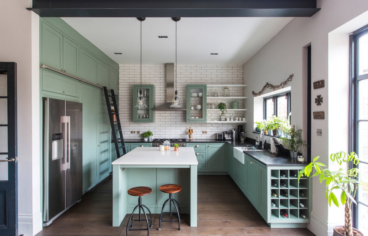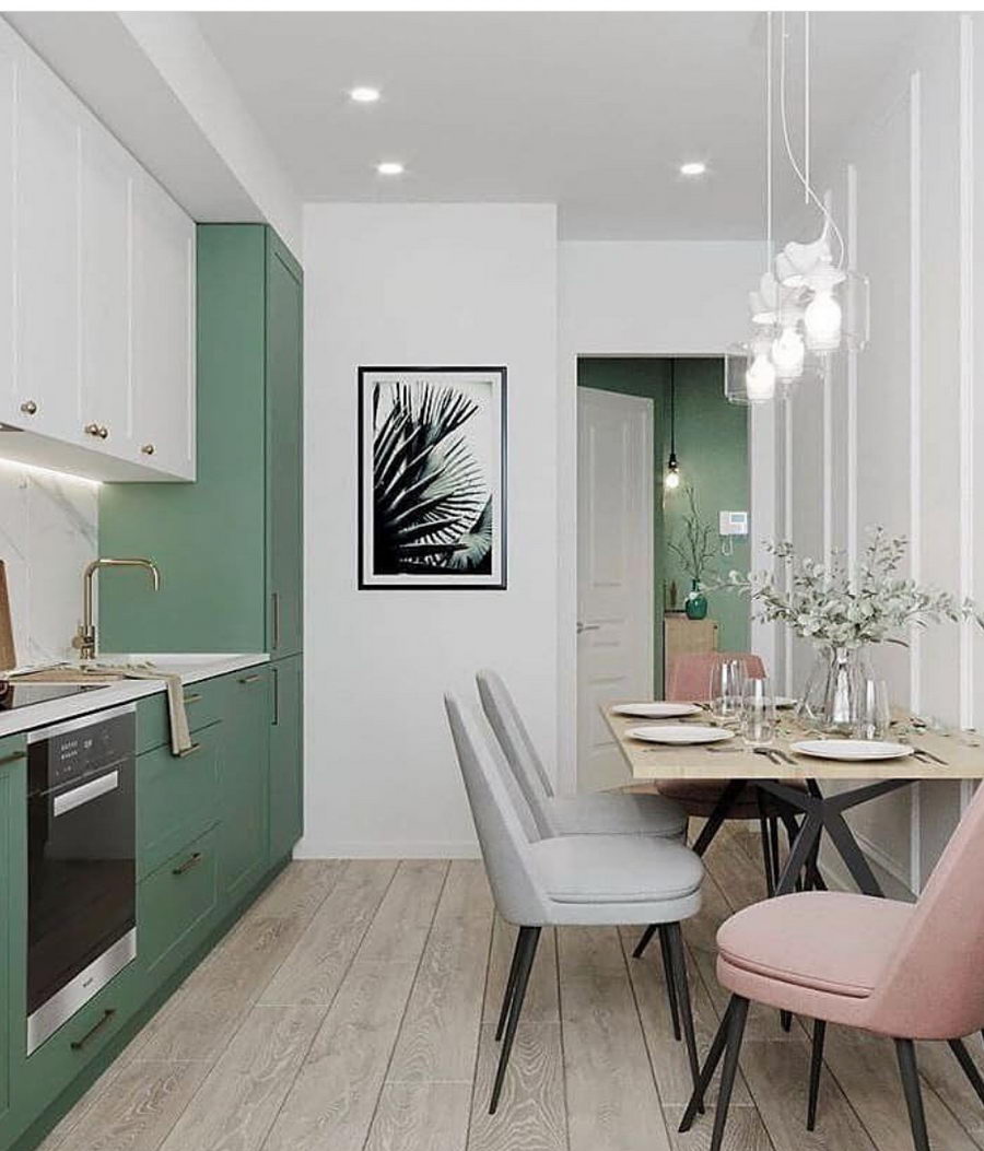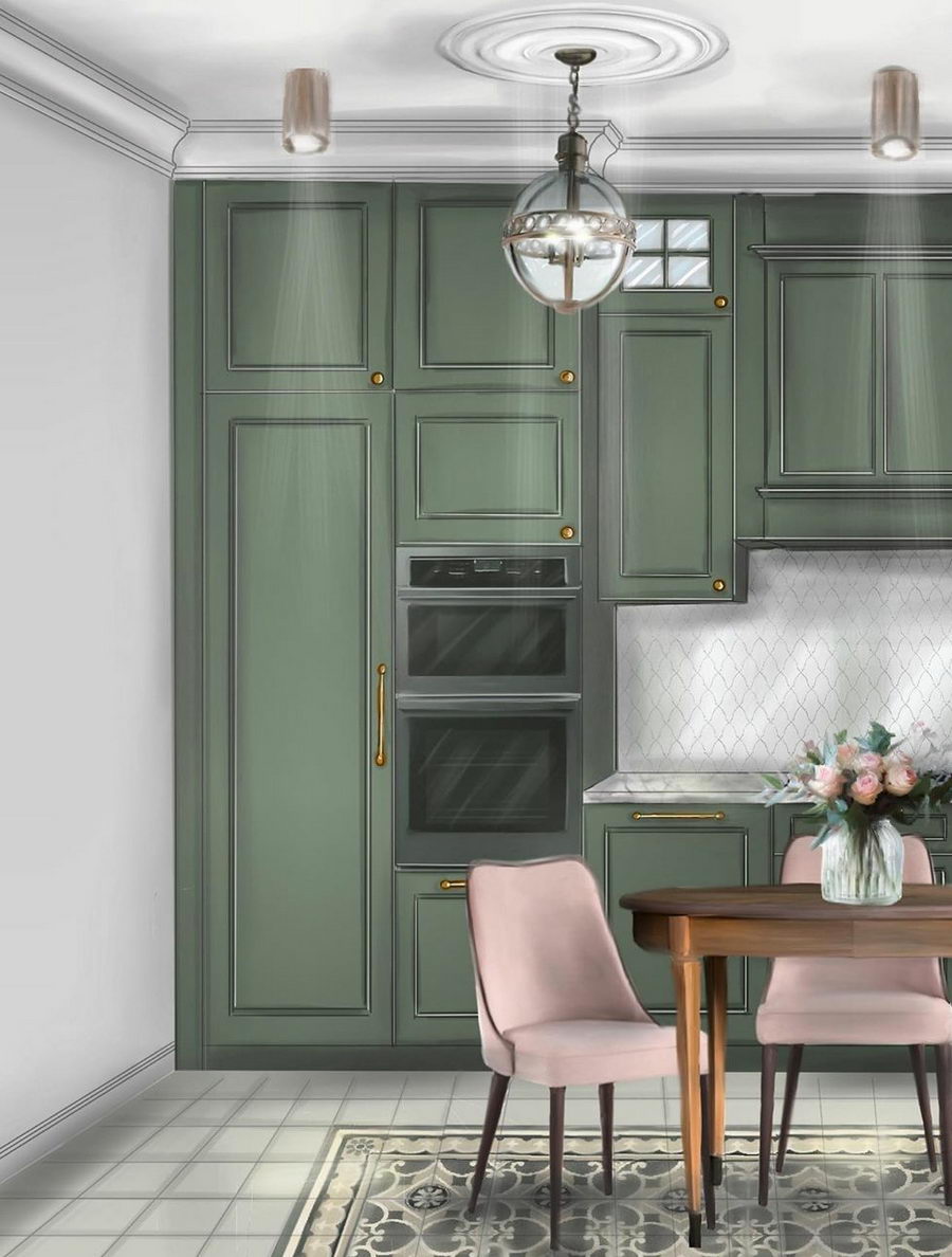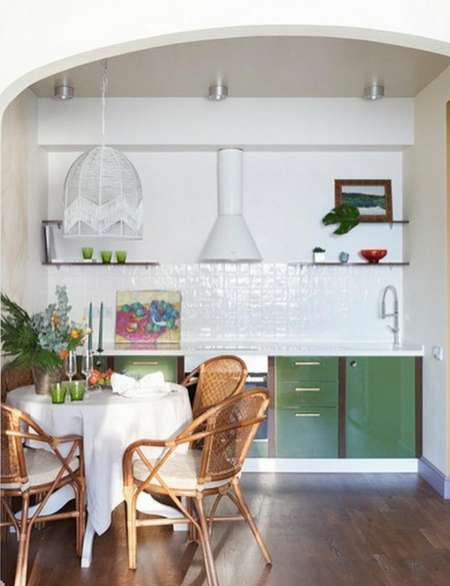 Это позволяет создавать оригинальные и в тоже время непохожие интерьеры. Когда вы слышите словосочетание «зеленая кухня», то не торопитесь делать выводы, пока не узнаете оттенок – решения могут быть самыми неожиданными.