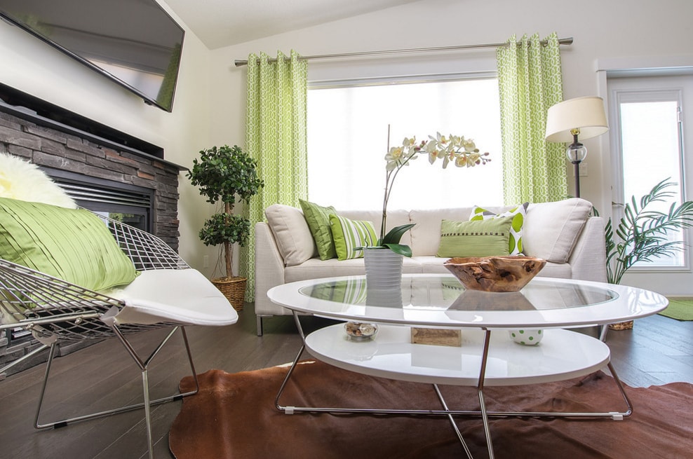 Позитива и экстравагантности добавят в интерьер оттенки лайма и фисташки. Капризный цвет лайма более уместен на больших поверхностях. Так же как и салатовый цвет они обладают свойством разнообразить повседневность и вносить радость в обыденные вещи.
