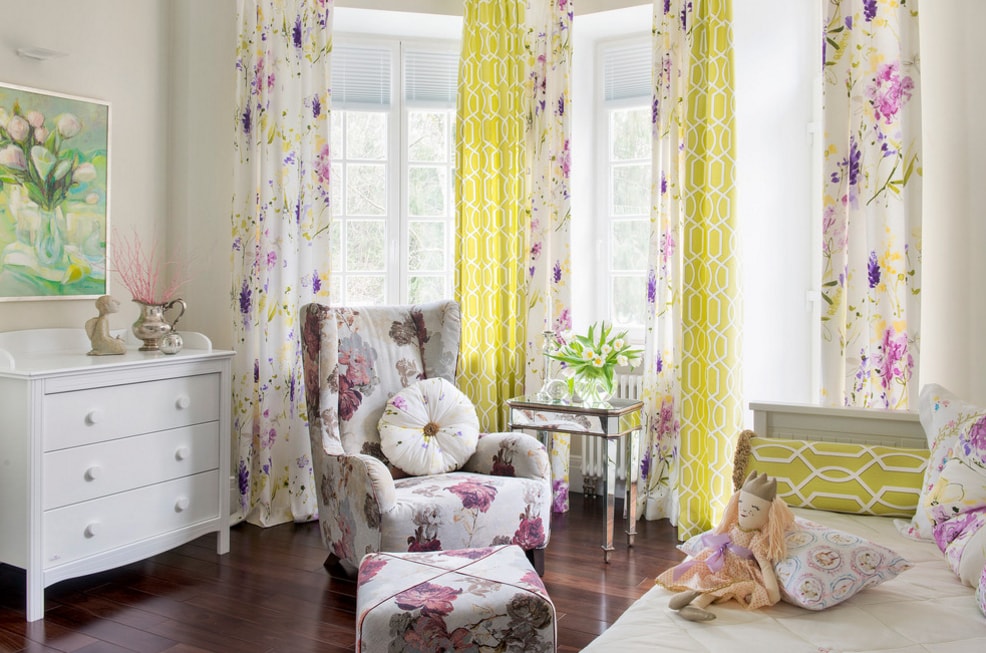 Например, зелено-желтые шторы подойдут для оформления интерьера, в котором отделка была выполнена не в желтом цвете. Поскольку в таком случае оконный проем будет выглядеть меньше, чем он есть на самом деле.